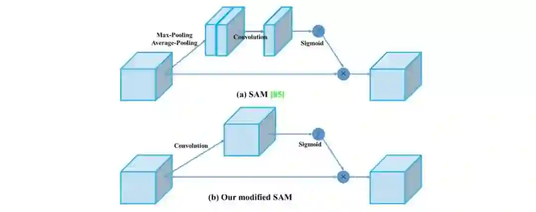 注意力已经在深度学习设计中得到了广泛的应用。SAM 会为输入特征图分别应用最大池化和平均池化,从而得到两个特征图集合。其结果会被送入一个卷积层,之后再由一个 sigmoid 函数创建出空间注意力。