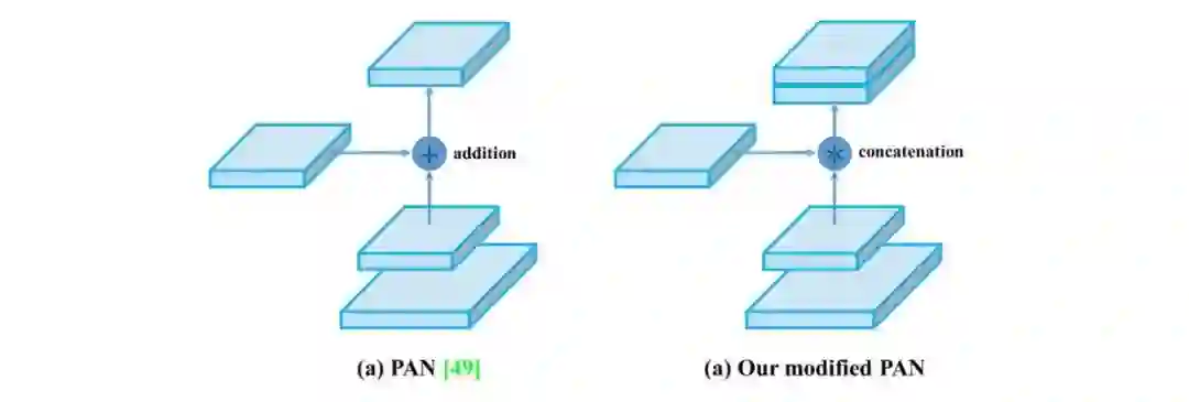 在 FPN 中,不同尺寸大小的目标是分开独立检测的。这可能会导致出现重复的预测结果,而且无法利用来自其它特征图的信息。PAN 最早使用了逐元素最大运算将这些信息融合到一起(这里不再详述相关细节)。