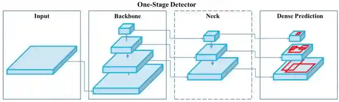目标检测器由用于特征提取的骨干部分(backbone)和用于目标检测的头部(head,下图最右边的模块)构成。而为了检测不同大小的目标,需要使用一种分层结构,使得头部可探测不同空间分辨率的特征图。