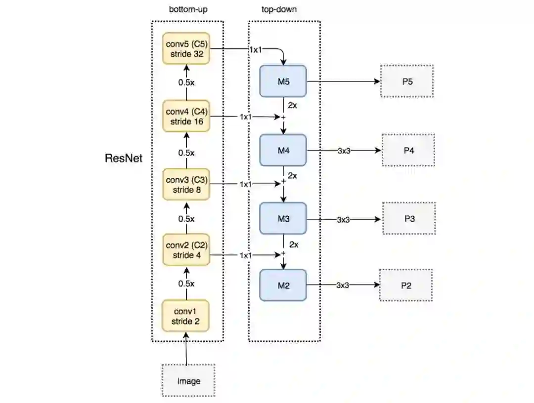在 FPN 中,来自自底向上和自上而下数据流的邻近层的信息会结合到一起。