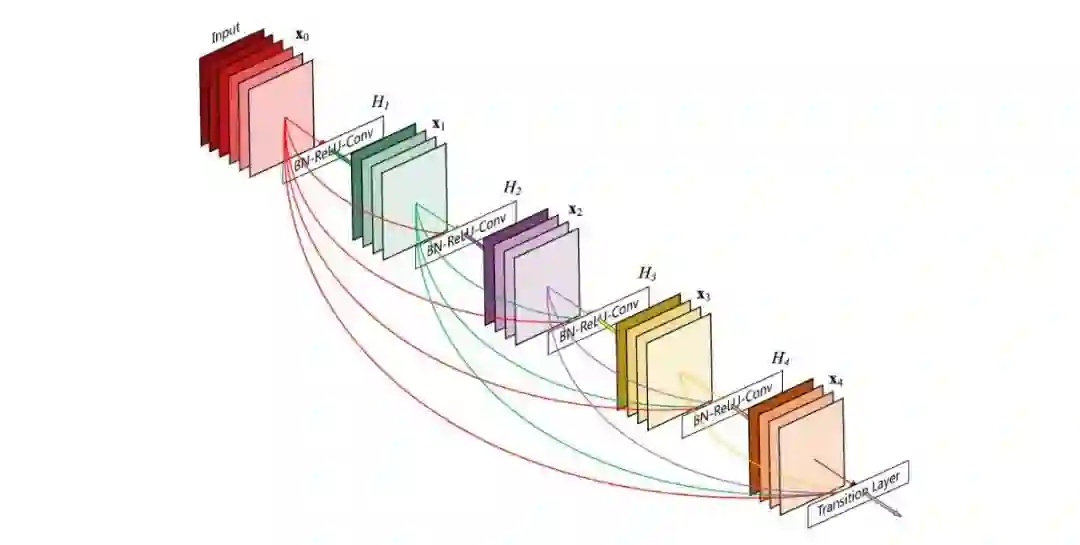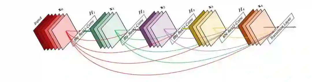 在后来的深度学习开发中,层之间的互连方式变得更加复杂。DenseNet 在这方面达到了极致。其中每一层都连接了其前面的所有层。