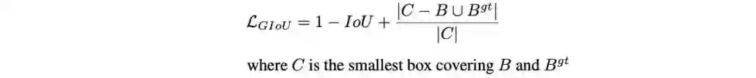 Generalized IoU(GIoU)通过将该损失优化为以下形式而解决了这一问题: