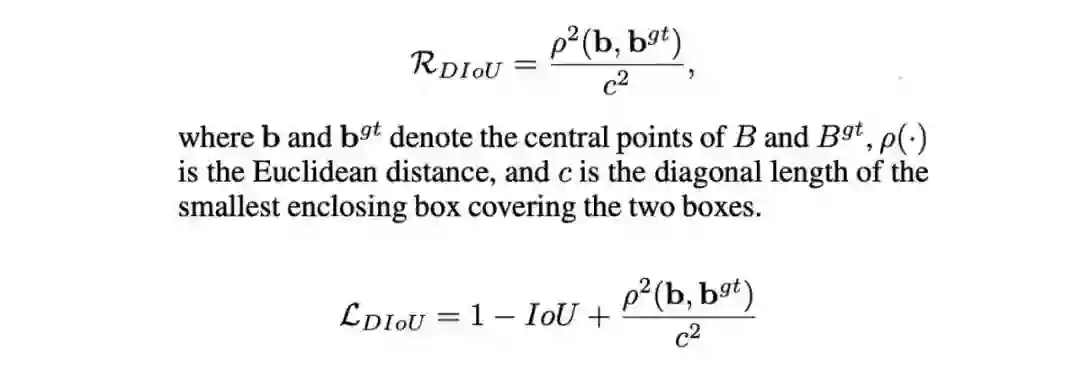 其引入了一个新的目标以减少两个框的中心点之间的距离。