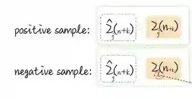 跳出电视剧来说,CPC会在样本里随机选一个时间点 ,把 前面提取到的所有的 用一个回归模型来总结前面所有信息(比如用 RNN得到图里的 ) ,然后用线性变换去预测出 。