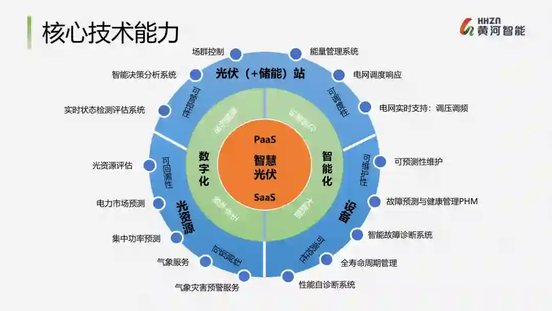 黄河智能以“智能光伏”为核心,围绕光伏和光伏+两大领域,提供数字EPC、数字化电站、光储一体化控制、数字化综合能源服务。以黄河公司及国电投光储创新中心为研发基地,建立辐射全国和全球的销售、服务、伙伴体系。产品形态包括软件、边缘计算设备、电站智能设备等,同时提供与产品相关的咨询、设计、运维等服务。
