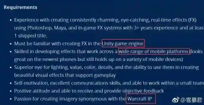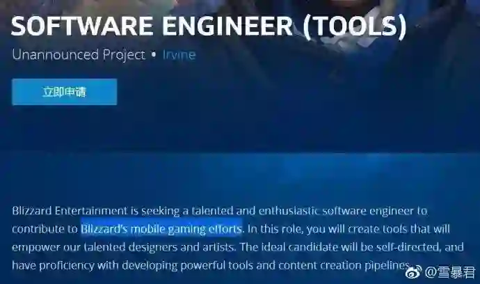 以上招聘信息的截图来自微博@雪暴君,其中部分可能因为招到了相关人员,已经从暴雪官网撤下