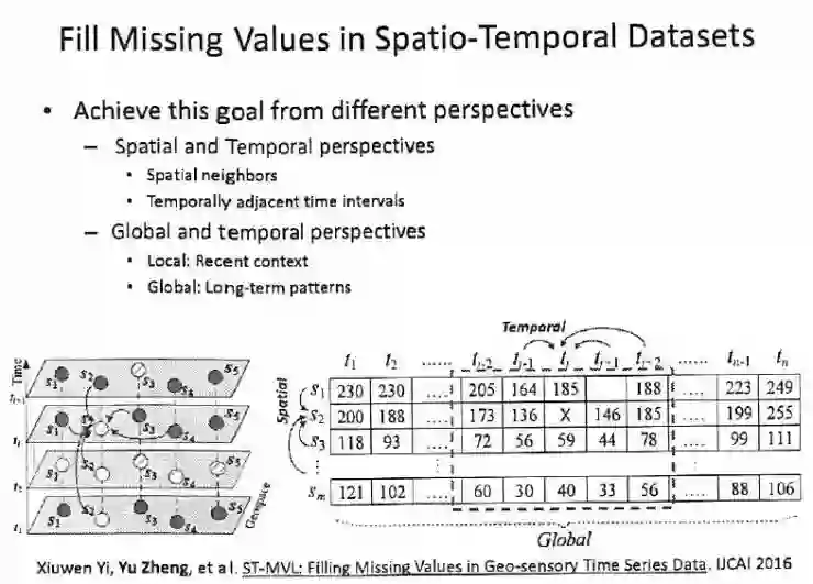 我们怎么做呢?我们基本上就是利用缺失点时序以及空间邻居的数据,一起来把这个数据填满,而不是仅仅只看自己的时间临近值。至于怎么用、怎么填是有讲究的,是用前一小时的数据还是用周边的数据,这个其实是比较难决策的过程。