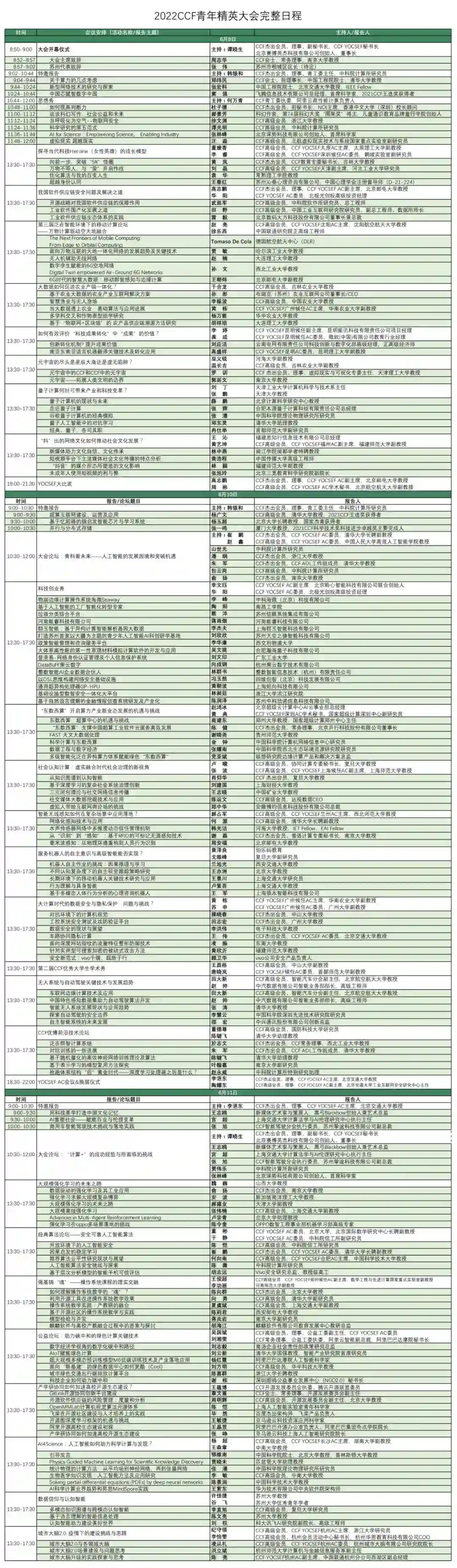 CCF青年精英大会2022完整日程公布,大佬云集,免费报名!