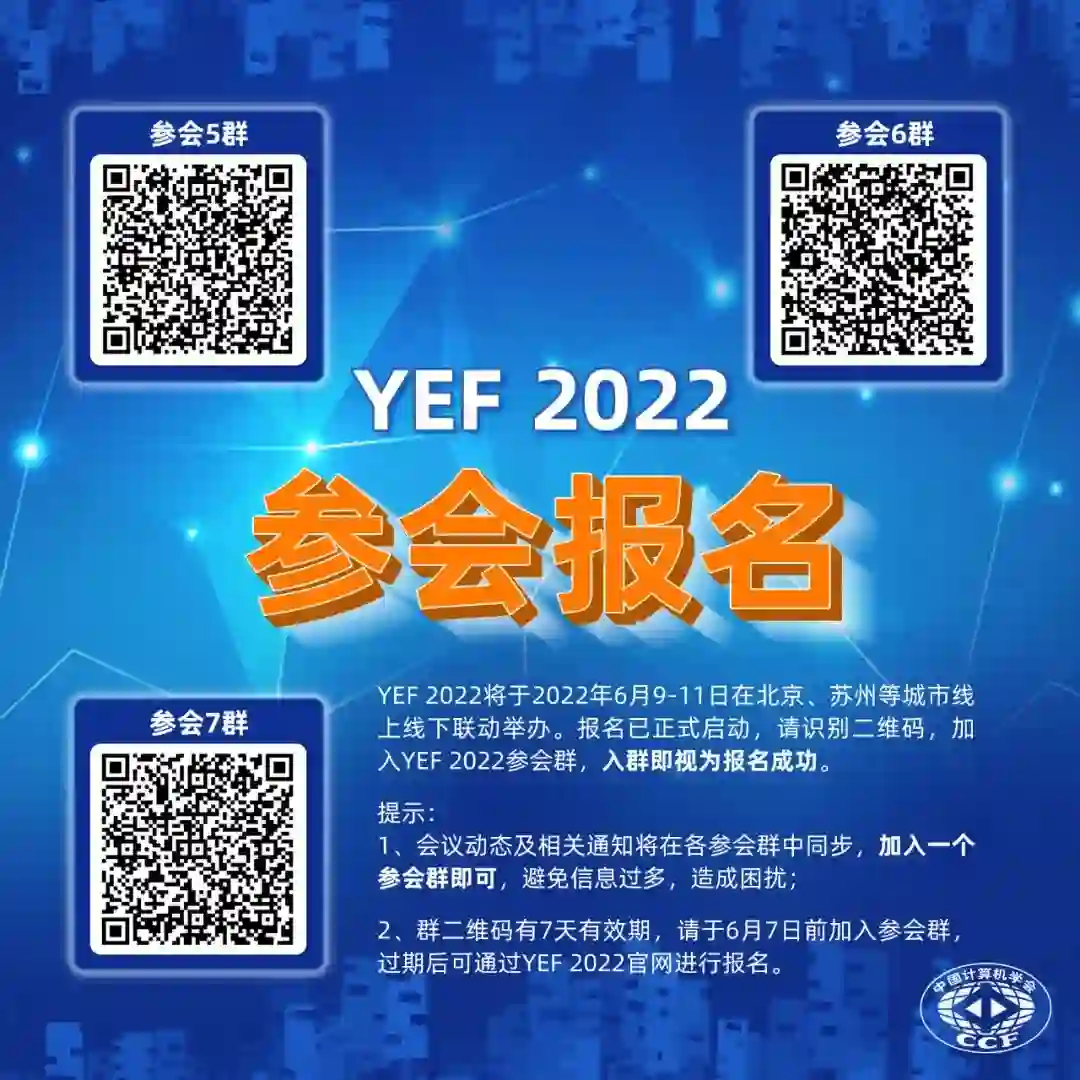 第十二届CCF青年精英大会(YEF 2022)将于6月9-11日在苏州召开