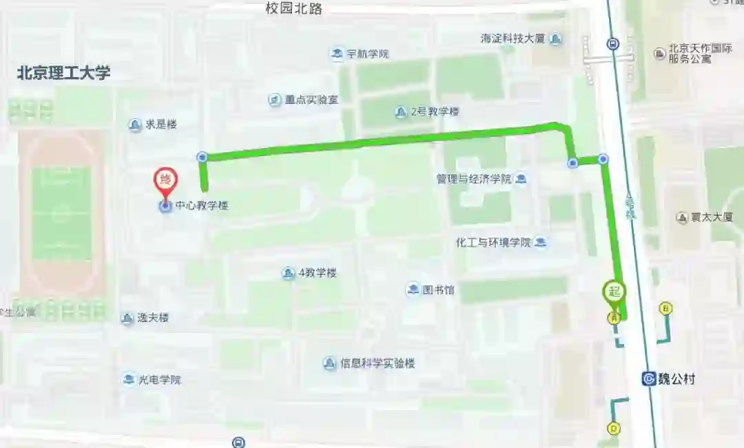 进入校园以后,大家可以直接问可爱的同学或者导航到达,导航目的地为北京理工大学-中心教学楼。
