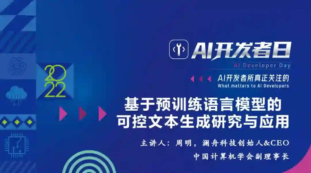 在 WAIC 2022 AI 开发者论坛上,澜舟科技创始人兼 CEO、中国计算机学会 CCF 副理事长、创新工场首席科学家周明发表主题演讲《基于预训练语言模型的可控文本生成研究与应用》。