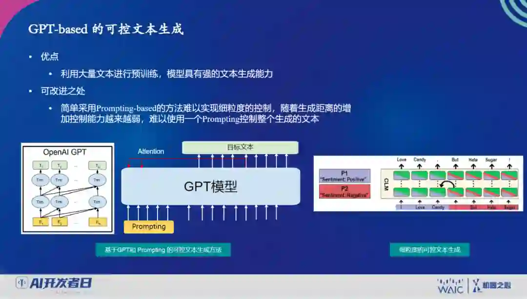 像 GPT 是比较常见的方法,但是有些问题,它很难实现细粒度可控的学习。简单采用 Prompting-based 的方法难以实现细粒度的控制,随着生成距离的增加控制能力越来越弱,难以使用一个 Prompting 控制整个生成的文本。