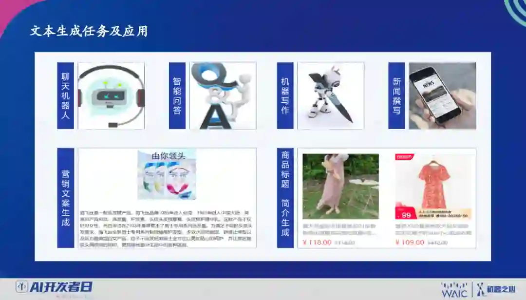 最后总结一下,可控文本生成应用前景非常广泛,但是现在传统的文本生成如果不做可控技术便会有很多问题,最常见的问题就是前后不一致,长文本的时候越写越散,有时候知识无法融入,实现多样化也是它的难题,以及连续出现重复的词、重复的句子等等。相应的工作都有人做了很好的研究,我们把有关的技术融会贯通,加入自己新的技术,做了很多可控文本生成的工作,包括网文写作、渲染、续写,文言文与现代文风格转换。另外,我们把它用在营销文案方面,进行具体的产品落地。未来还有很多工作会引起大家关注。刚刚介绍的可控文本生成研究虽然有点进展,但不是长足的进展,还有很多的地方需要深入的研究,也希望在座的 AI 开发者仔细了解目前的进展情况,结合自己的实际,把可控文本生成推向新的高度,谢谢大家。