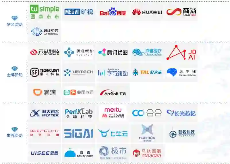 铂金赞助商:图森未来、旷视科技、百度、华为、商汤科技、奥比中光
