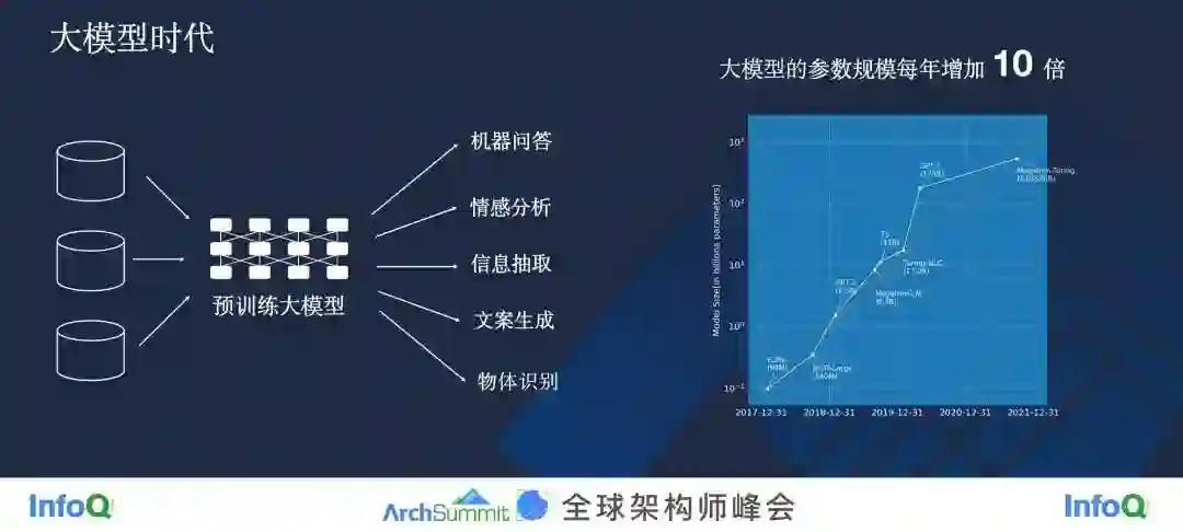 第二,模型比较大,从几十亿、几百亿,甚至几千亿、几万亿的参数规模都有。