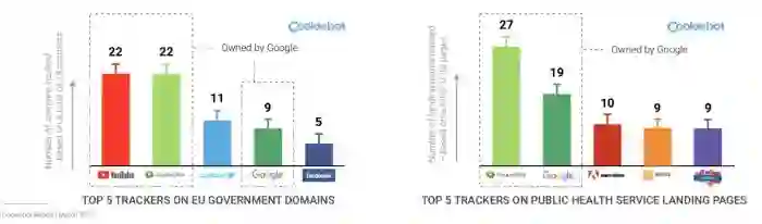 在22个主要政府网站的前五大追踪域名中,谷歌、YouTube和谷歌旗下DoubleClick广告平台占据了三席。