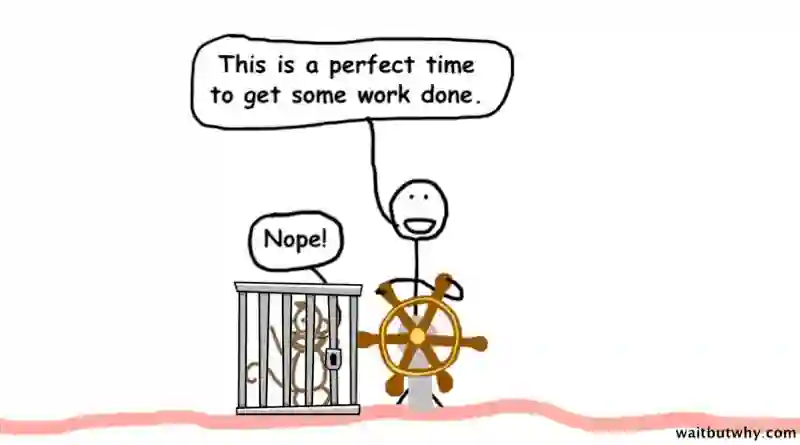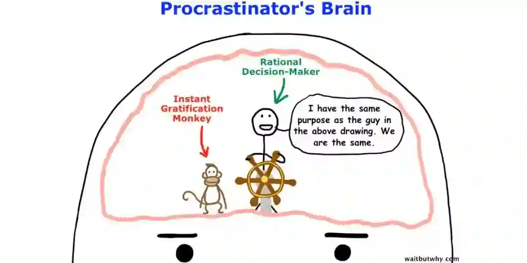 Tim Urban 在 Ted 演讲《拖延症人群的内心世界》(https://www.ted.com/talks/tim_urban_inside_the_mind_of_a_master_procrastinator?language=zh-cn) 中用一副漫画生动的刻画了每个人面临诱惑时的挣扎。你的脑子中住着两个生物,一个是理性决策者,一个是猴子。