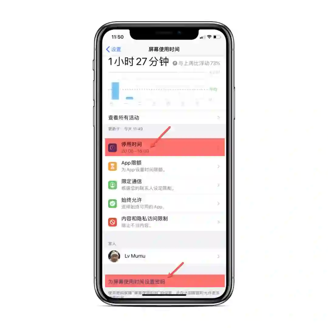 我让太太在魔鬼手机里开启了屏幕时间管理,并加了密码限制(密码只有我太太知道)。