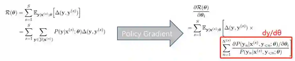 该论文的精髓,跟 MRT 类似,即通过强化学习的方法改造损失函数,加入跟评价指标相关的项,如下所示(摘自本人课件)
