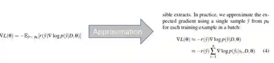 注意到,跟 MRT 面临的相似问题又出现了——训练的时候,我们的 0-1 标签并不是直接产生的,而是用人工写的摘要对句子打分然后离散化得到的,而这个打分,其实也可以作为摘要好坏的评价指标。所以『训练目标』和『评价指标』之间的偏差就产生了,索性,我们已经有了强化学习武器了。