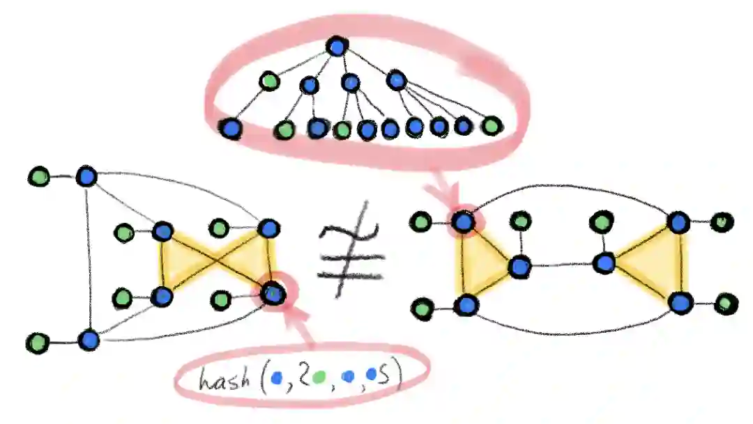 不幸的是,由于可以通过 WL 测试是判定图同构的必要非充分条件,上述我们期望得到的特性只有一个方向能说得通:当 G~G′ 时, f(G)=f(G′),但反之不一定成立:两个非同构的图可能会得出相同的嵌入。