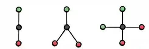 图 3:通过「取最大值」操作无法区分左图、中图、右图,通过「取均值」聚合函数可以区分左图和中图、通过「取最大值」和「取均值」操作均无法区分左图和右图。这是因为通过这些方法从黑色节点的邻居中聚合而来的特征将会是相同的。