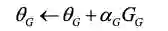 生成模型的目标和单步强化学习的目标类似,因此,这里使用基于策略的梯度函数来更新生成模型的参数。与强化学习相对应的,可以表示成状态,而