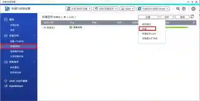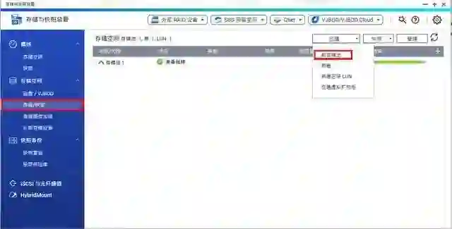 完成存储池的设置后,就要继续在这个存储池(可用空间)的基础上创建「新卷」。