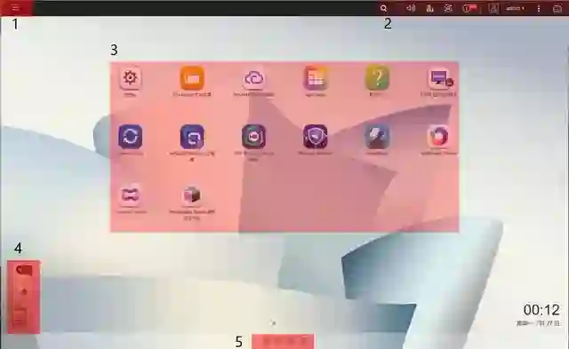 其中 1 是主菜单,打开后我们可以看到系统的所有功能、应用程序等