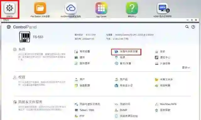 5 是一些比较不常用的功能了,「myqnapcloud」、应用工具等;