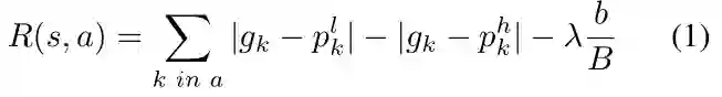 reward 函数使用上面提出的 R(s,a)。训练时,选择得分最大的动作,对该区域放大,并将 AG map 对应区域像素值置0。使用高分辨率检测器对放大区域进行检测,得到一组 proposals,然后使用 R-net 中的方法,和低分辨率检测结果配对,利用公式1输出 reward。