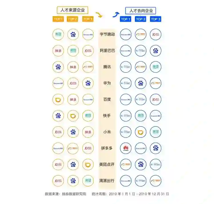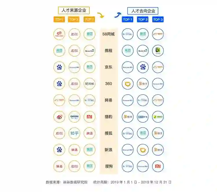 而2019年,京东也成为了新的人才输出大户,华为、美团点评、滴滴出行和搜狐搜狗等,都是京东人才流向的主要公司。