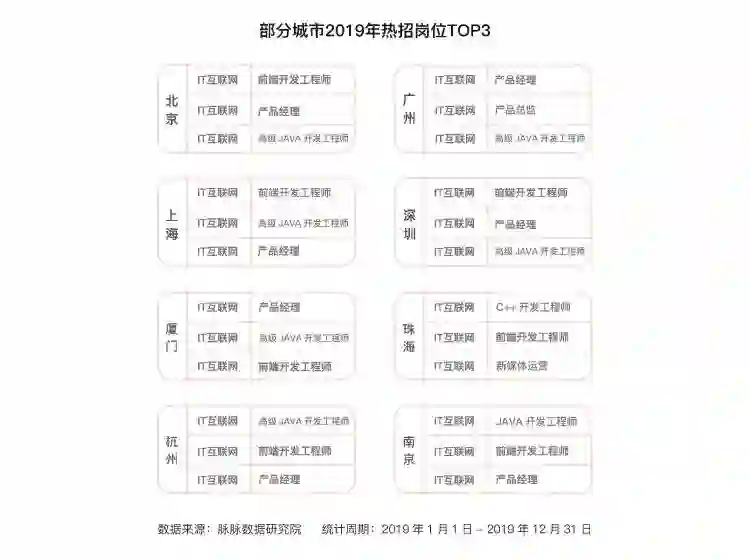 而二线城市的互联网产业人才需求,也正在向研发等核心岗位倾斜。厦门、珠海,杭州、南京等城市招聘的互联网人才中,过去测试、运维等基础技术岗人才需求旺盛,如今对技能要求更高的研发、产品相关岗位人才更为热门。
