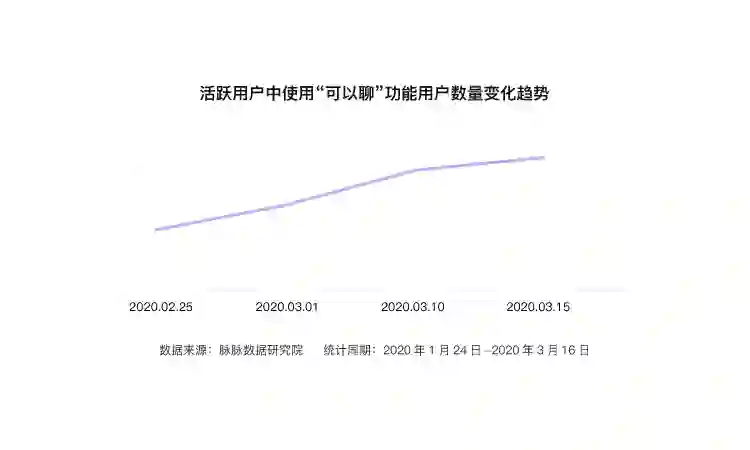 虽然部分企业的减员会释放出部分人才,但由于显著比例的求职者推迟跳槽,企业的招聘将面临更多压力。不过,推迟跳槽并不代表求职者对新职业机会采取拒绝态度。脉脉平台大数据显示,从2020年2月25日到3月15日的短短20天时间,使用“可以聊”功能的活跃用户数量便增长了1.8倍。“可以聊”是脉脉针对观望机会的人才,所推出的轻意向表达功能。点击“可以聊”意味着该位人才虽然没有主动投递简历,但实则对机会持开放态度。企业需要采用社交互动,长期沟通管理等方式,提升针对这类“待机”人才的获取效率。