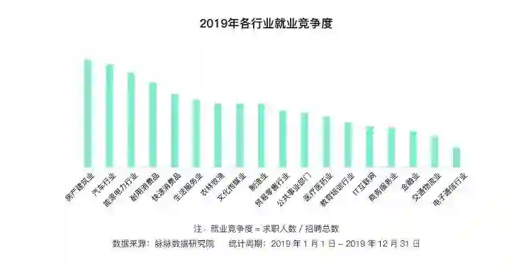 受到调控政策及需求等多方因素影响,房地产行业在2019年风波不断,就业竞争度也同样高企,位居各类行业中第一。在疫情的影响下,地产行业预料将继续承压。