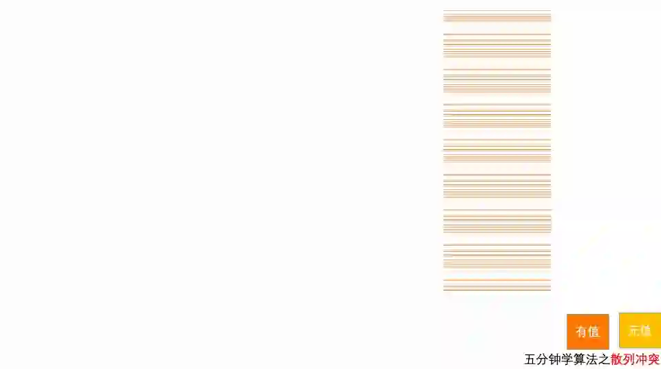 以上图为例,散列表的大小为 8 ,黄色区域表示空闲位置,橙色区域表示已经存储了数据。目前散列表中已经存储了 7 个元素。此时元素 7777777 经过 Hash 算法之后,被散列到位置下标为 7 的位置,但是这个位置已经有数据了,所以就产生了冲突。