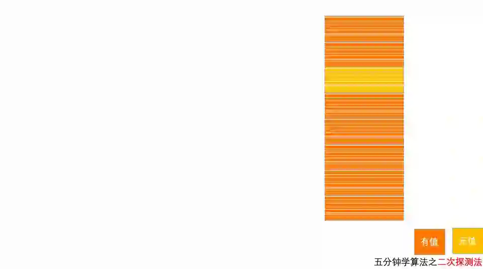 二次探测是二次方探测法的简称。顾名思义,使用二次探测进行探测的步长变成了原来的“二次方”,也就是说,它探测的下标序列为 hash(key)+0,hash(key)+1^2或[hash(key)-1^2],hash(key)+2^2或[hash(key)-2^2]。