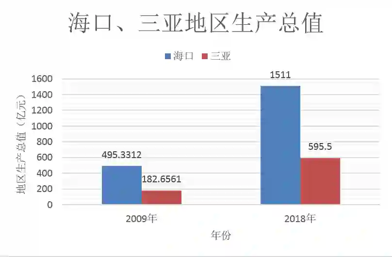 以经济总量论,两城也明显不在一个量级。10年前(2009年),海口(495.3312亿元)的地区生产总值约为三亚(182.6561亿元)的2.71倍。