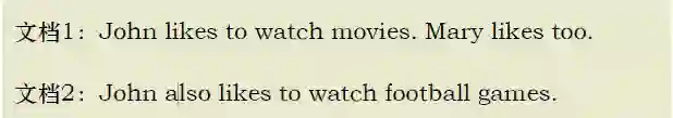 词袋模型就是忽略文章中的语法和语序,仅仅用一组无序的词表示这样一篇文章,观察如下两篇文章: