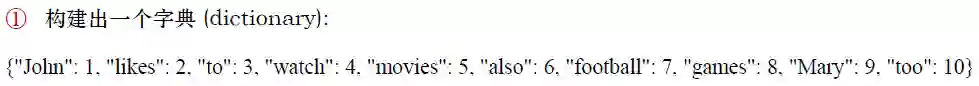 用词袋模型表示这两篇文章基本的过程很简单,第一步是构造字典:
