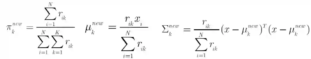 通过推导,我们能得到高斯混合模型中的混合比例,均值,协方差矩阵: