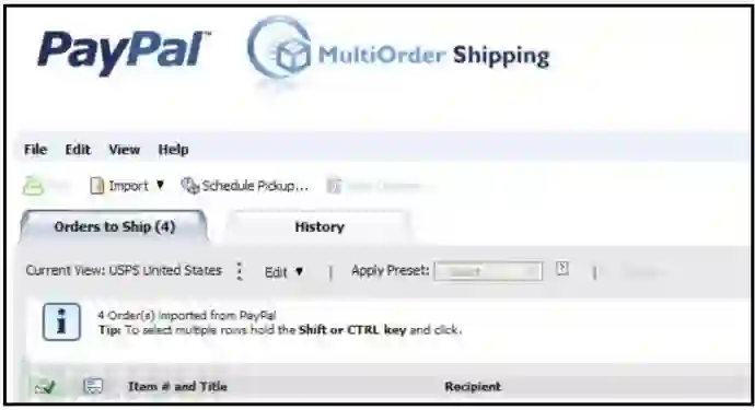 PayPal Multi-Order Shipping是一种工具,允许一次从PayPal账户打印多达50个国内美国邮政服务运输标签。