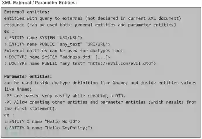 参数实体帮助我们使用上述技术通过外部实体访问来从被攻击的服务器中向外部服务器传输文件资源内容。虽然解析器存在漏洞,但不支持直接输出回显。