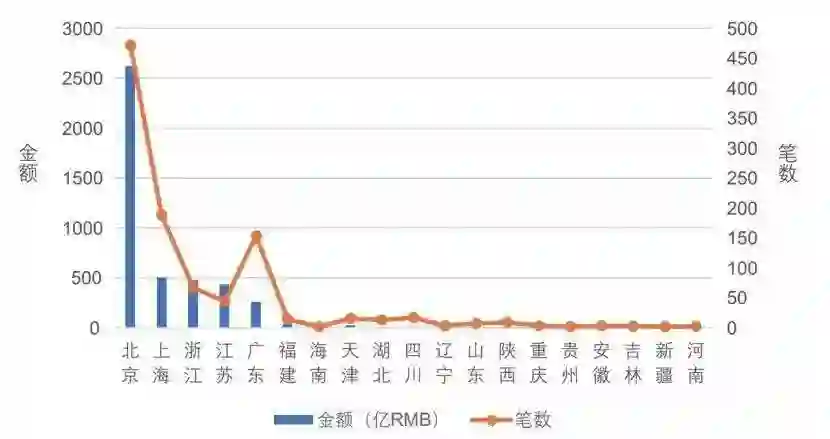 图4.中国人工智能投融资地域分布