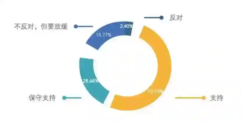 根据清华大学的《中国人工智能发展报告2018》中对3088人的调查显示:超过半数国民对人工智能的发展持支持态度,表示反对态度的仅占2.4%。