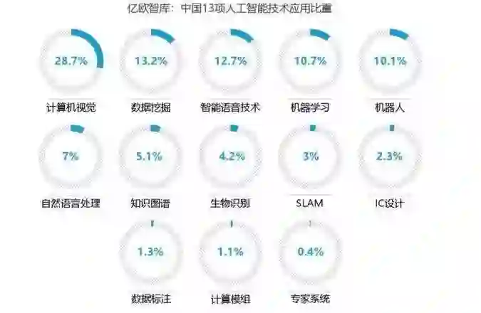 图10.中国人工智能技术应用比例(亿欧智库,2018)
