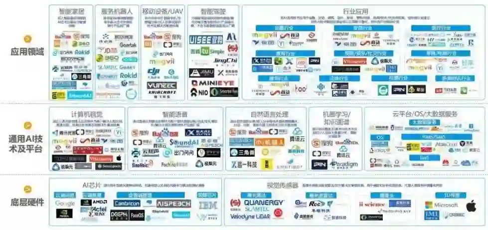 在人工智能产业链中,由于先发优势,基础层主要掌握在少数巨头手中。