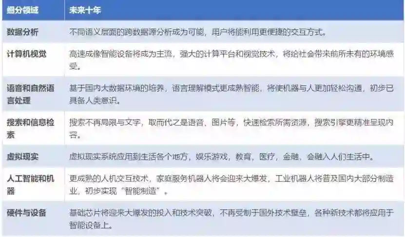 2017年12月,《促进新一代人工智能产业发展三年行动计划(2018~2020年)》的发布,它作为对7月发布的《新一代人工智能发展规划》的补充,详细规划了人工智能在未来三年的重点发展方向和目标,每个方向的目标都做了非常细致的量化。