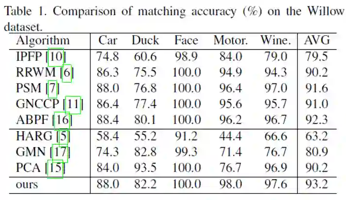 表1显示了我们的算法与基准算法的匹配精度([5、15、17]的结果引自[15])。