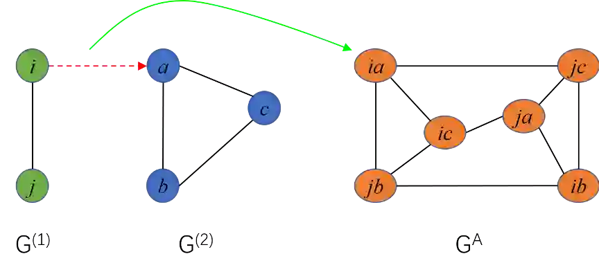 基本上,通过如下构造分配图 ,两个图 与 之间的图匹配问题可以解释为分配图上的节点标注问题。